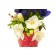 Un vas decorat vios cu frezii, lalele, anemone si wax flower.